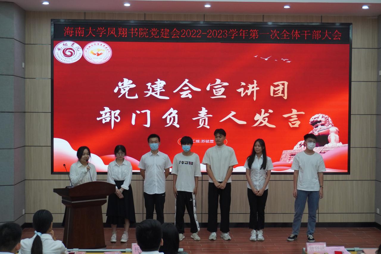 大会第二项,党务部、党训部、活动部、宣传部、宣讲团成员依次上台进行自我介绍。来自不同年级、不同专业的干部们相遇于此,欢声笑语中,初见的陌生感了然无踪,温馨和谐的组织氛围悄悄发芽。