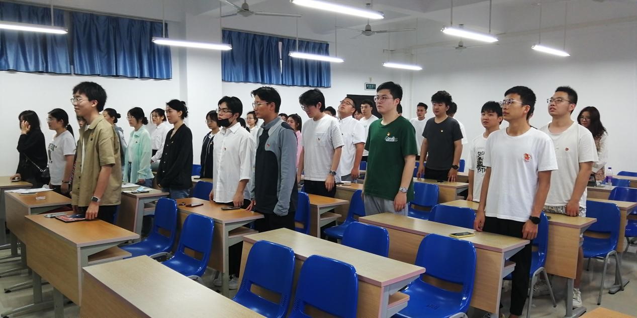 言为心声,歌由情溢。国歌伴奏一响,全体党员肃然起敬,高声激昂歌唱国歌,唱出心中对党勇立时代潮头敢于牺牲、不懈奋斗,攻坚克难、开拓进取,朝气蓬勃、活力四射,不断发展壮大的深情赞美之歌!