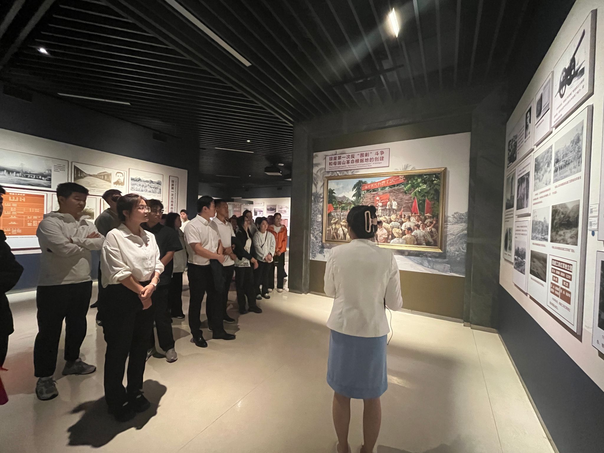 海南省史志馆全面记录了海南的革命、建设和改革开放历程,系统展现了琼崖革命“二十三年红旗不倒”的壮丽史诗、建省办特区的辉煌成就以及自贸港建设的宏伟蓝图。在参观过程中,党员同志们认真聆听讲解,在一件件珍贵实物、一幅幅历史图片前驻足观看,沉思交流,深刻感受革命先辈的坚定信仰与奋斗精神。全体党员在活动最后庄严列队,高举右拳,重温入党誓词,将这份崇敬与感动化为永恒的责任。
