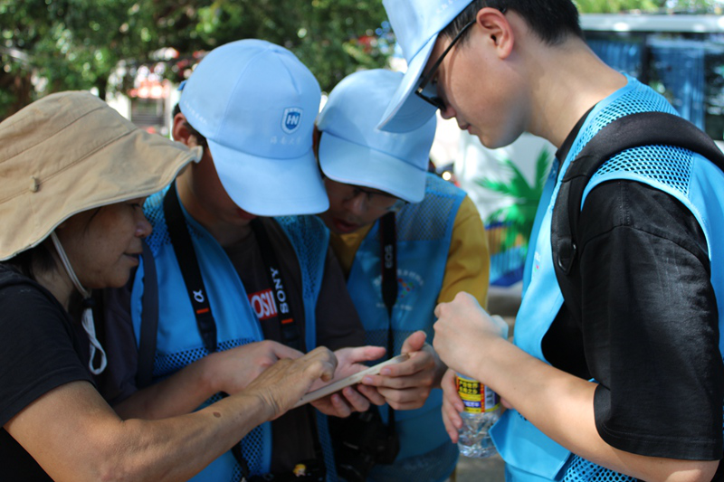 志愿者们邀请村中老人填写问卷并细心解释问卷内容。 邵蕊摄